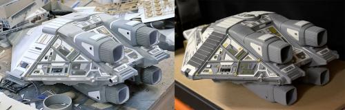 I will add some primer to the top of the ship over the next few days to finish it off, and take some final comparison shots against the original (in primer).