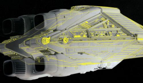 Most of the kit parts have now been modelled and placed on the bow of the ship.