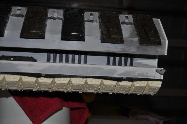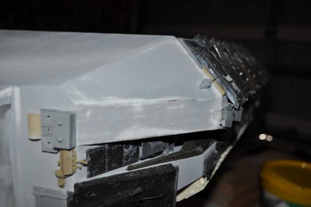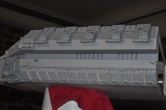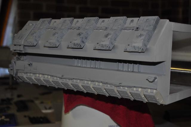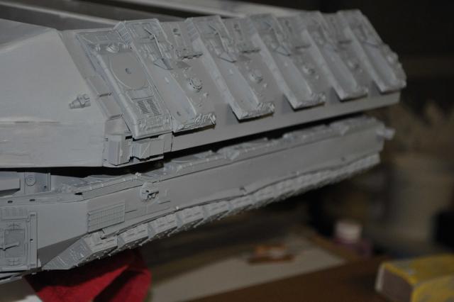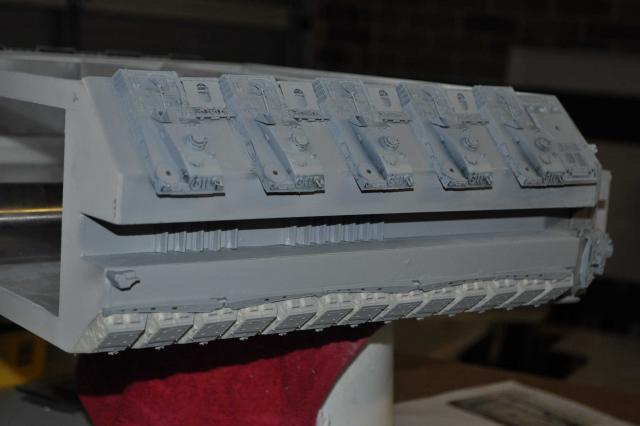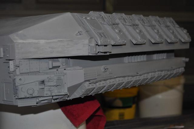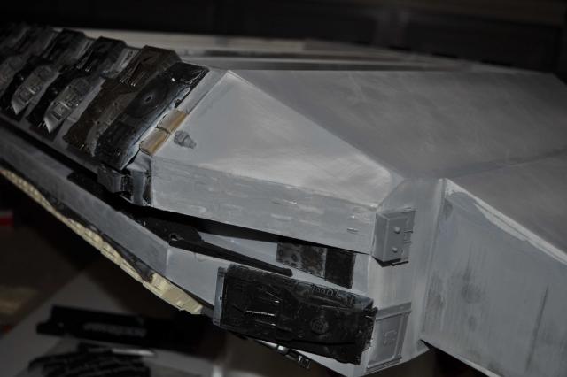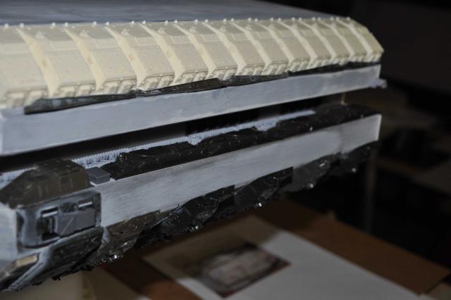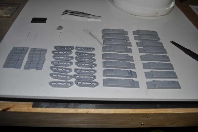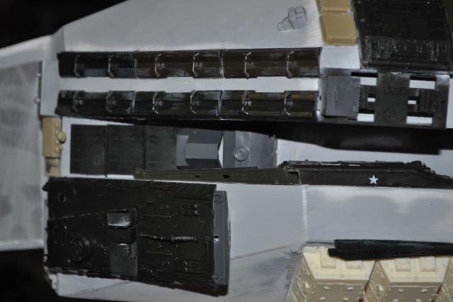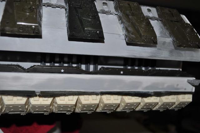 got the T-8 Tstrip which has gone in & looks pretty good. Can now progress to the Trench detail of Tracks & Sheridans. Have got the primer on & in all honesty see some areas Im not 100% happy with on the ports & all over but thats what primers for so will attend to those & fix them up. Plenty of pics so I'll let them do the talking. One thing that was a big negative was me sticking the plows on the wrong way. Thanks to Phil watching my back we spotted the problem. Unfortunately removing the plows to correct didn't go so well & lost 4 of them with damages. Lucky I had some back up 254's I was going to sell...... Primers on & we're moving forward none the less. All feedback welcome so i can fix anything thats not right.