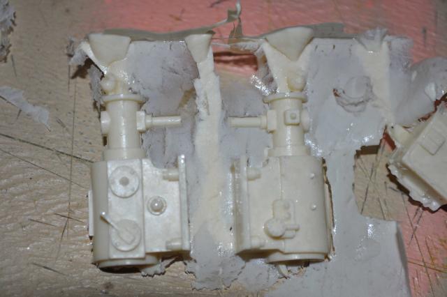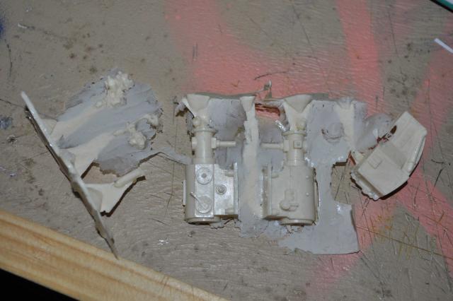 Ok so as the clothes drier is inthe work shop i turned it on for a while to heat the place up which it did. I gave doing a cast a go worked quite well. Should have washed the mould from Mould release but gave the parts a wash & scrub & they didn't crumble. the mould release came off & gave em a dose of primer. Their still not 100% but they worked. Ive got the bomb sites done for one side & the King Tiger parts for the Trench so thats pretty good. Can't wait for it to warm up so I can go into parts production.....