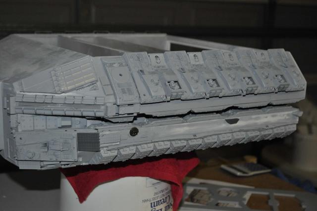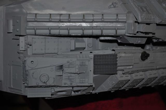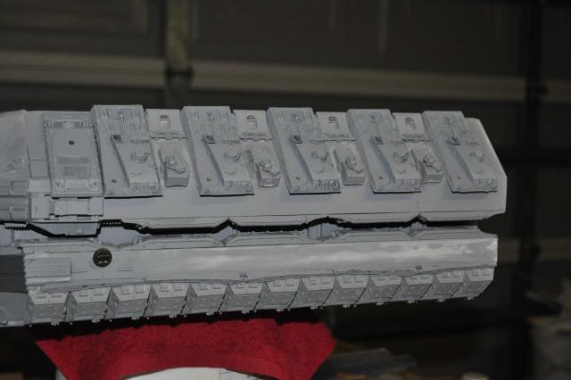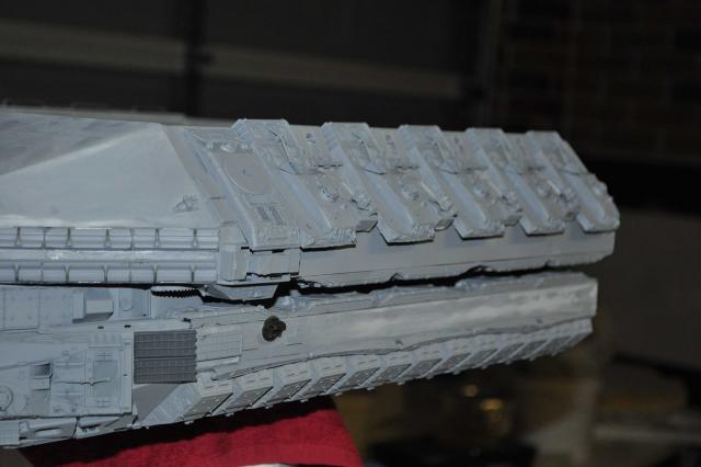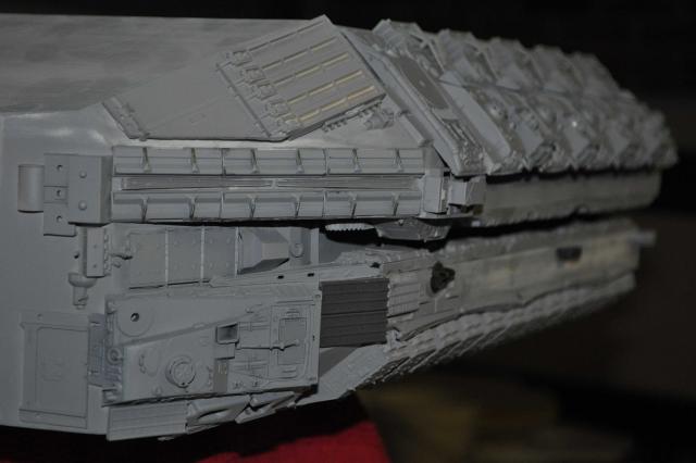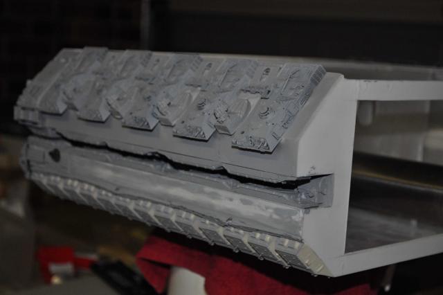Small update. Plows are back on the right way around(thanks Phil, again!) Had no luck with casting today so have only got one top side slope completed so far. I still need to pull another 3 sets of B52 parts... One sides done & just needs the Fujimi tanks on the lower slope wall with a couple of other bits. The Hasegawa 155mm Long Tom parts are in the plow gap on the waist which look good. Just need one more Long Tom for the other side now.... It never ends