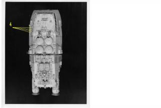 I'm really happy I got this kit - kudos to Mike, Sean, and Ryan for their efforts making this happen. It was a pleasure to put together and will be a great display piece. A few notes here and there: I wanted this one to have some rusted areas along the panel edges and greeblies and used the technique that REL posted a few months ago using powered pastels in thinner. It worked great but after the thinner dried the colors really popped-out and the rust was way too orange and too bright. I removed quite a bit of that and went over it with a browner rust pass which was still too dark and then toned that down further with the pastel work. I love the blazing engine lights. The foil inserts in the engines really make this effect work. It's far better in the pics than in person but I guess that's what mattered for the filming models. These lights are 5watt, 12v halogen bulbs. The internal armature and the stand I made really helped with working on this. Between the antenna on top and the landing gear it's really impossible to set this down without damaging it. The antenna were glued on after weathering but the landing gear had to go on first. Even though as a display piece the exposed wiring seems a little out of place but I wanted to stay true to the studio model and make the electrical connections functional. It always seems to have a frown....reminds me of a sad clown. The foil inserts without the lights on. I glued the foil onto some stiff paper and then cut these into cones that would hold their shape a bit better inside the engine bells. Thanks for looking. -Doug